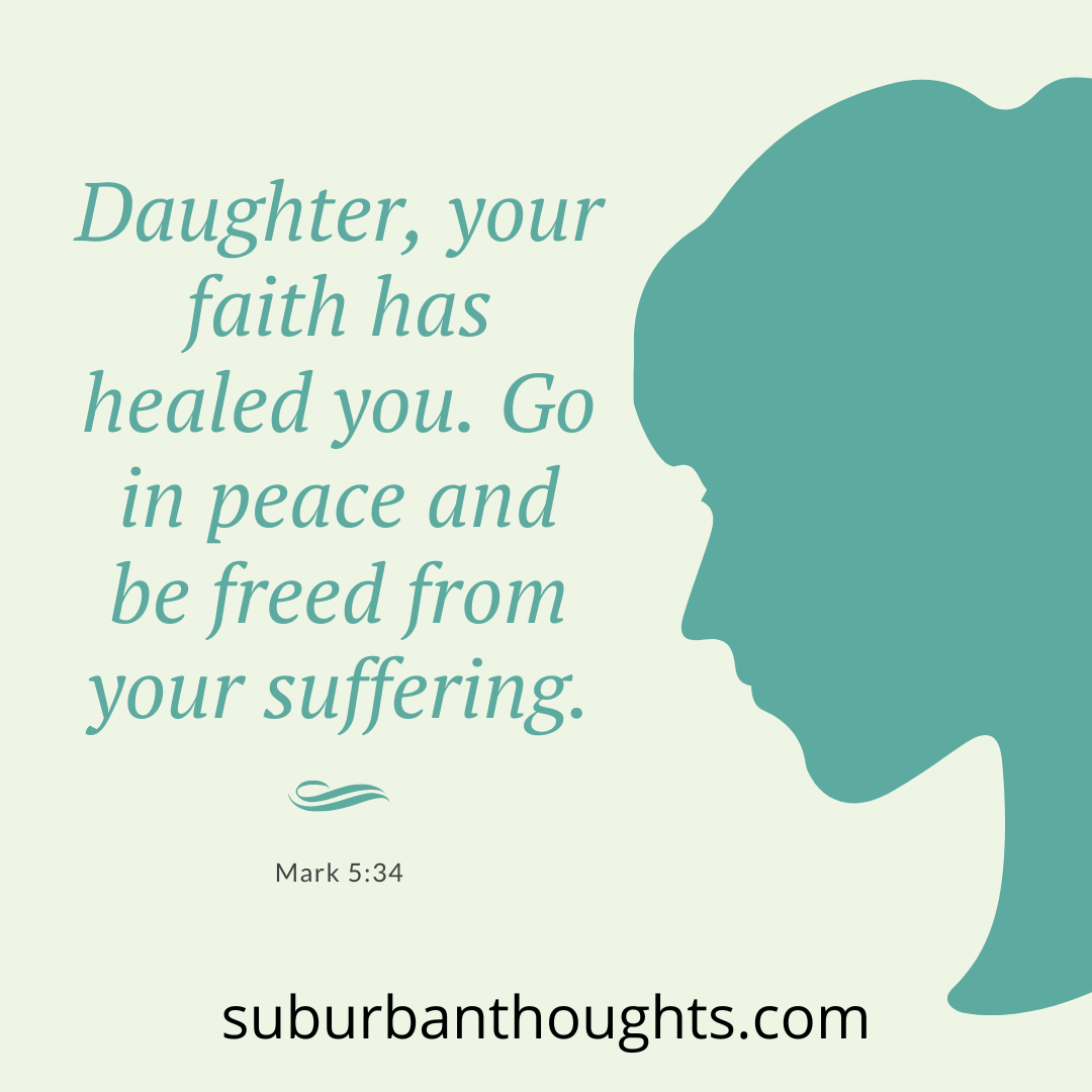 In the New Testament, we read a story about the woman who bled for 12 years before being healed by Jesus (Mark 5:21-43). She spent years suffering and regardless of how much she spent on doctors they could not heal her. She bled, which would mean she was considered unclean for 12 years. To be ceremonially unclean under the Levitical Law, would mean that anyone who came into contact with her would be considered unclean and would need to offer a sacrifice in order to remove their sin. This would imply the woman lived as an outcast and didn’t come into contact with people. It wasn’t until Jesus came to town and she touched the hem of his garment that she found healing. Jesus told the woman that her faith healed her.